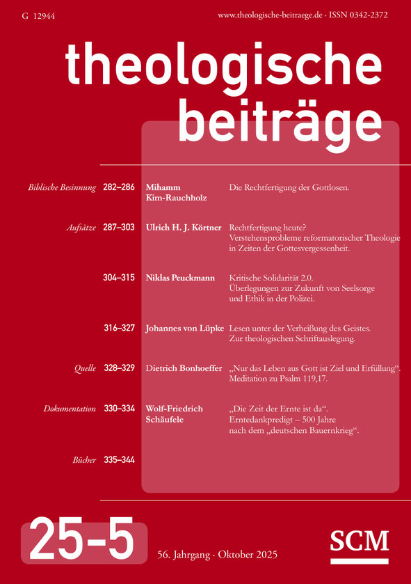 NEU! Sie finden auf unserer Homepage einen Podcast, in dem Heinzpeter Hempelmann seine ersten Gedanken zu diesem Beitrag entfaltet hat – vgl. S. 250. Auch zum Beitrag von Hans-Jürgen Abromeit im letzten Heft („Israel, die Juden und wir Christen“) ist ein Podcast eingestellt. Wir setzen die Reihe fort!